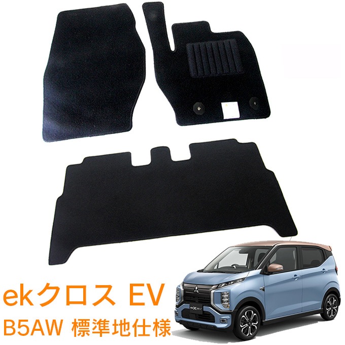 三菱 EKクロス EV B5AW 標準地仕様車用 令和4年6月~ 純正型 フロアマット 黒 ヒールパッド有り フロント・リア 1台分