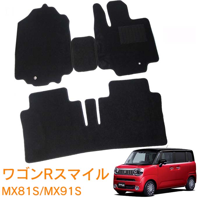スズキ ワゴンRスマイル MX81S MX91S 全グレード適合 令和3年9月~ 日本製 純正型 即納 フロアマット(フロント3分割タイプ) 黒 ヒールパッド有り フロント・リア 1台分